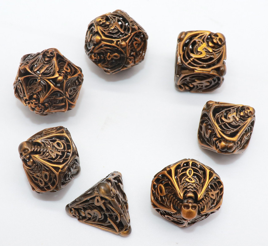 Set lengkap tujuh dadu polihedral bertepi tajam, dituangkan dengan tangan, dipoles dan diampelas hingga kehalusan yang luar biasa. Dadu bertepi tajam yang dipoles dengan tangan, diampelas dengan tangan. Tujuh dadu polihedral. Buatan tangan dan diukir dengan tangan.Direkomendasikan untuk digunakan dalam baki dadu.